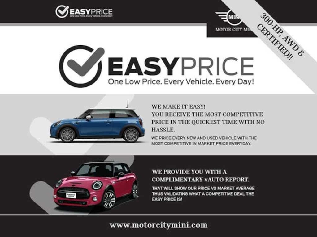 4X4, ALL POWER OPTIONS, ALL WHEEL DRIVE, BACK-UP CAMERA, BLUETOOTH HANDS FREE PHONE, CERTIFIED, HEATED SEATS, LEATHER, LOCAL TRADE, MOONROOF, NAVIGATION, PANORAMIC ROOF, QUALIFIES FOR LOW APR. OAC., REMAINDER OF FACTORY WARRANTY, CARFAX ONE OWNER, BOUGHT AND SERVICED HERE, NO ACCIDENTS !!!, EASY PRICE... ONE LOW PRICE. EVERY VEHICLE, EVERYDAY!, ABS brakes, Active Cruise Control, Active Driving Assistant, Advanced Real-Time Traffic Information, Alarm System, Alarm System (DISC), Alloy wheels, Apple CarPlay Compatibility, ConnectedDrive Services, Dynamic Damper Control, Dynamic Digital Instrument Cluster, Electronic Stability Control, Enhanced USB & Bluetooth, Front Center Armrest, Front dual zone A/C, harman/kardon® Logic 7® Digital Surround, Heated door mirrors, Heated Front Seats, Heated front seats, Heated Steering Wheel, Iconic Trim (DISC), Iconic Trim 2.0, Illuminated entry, Interior Surfaces Piano Black, Leather Cross Punch Upholstery, Low tire pressure warning, Media Display (6FP), MINI Assist eCall, MINI Connected, MINI Connected XL, MINI Excitement Package, MINI Head-Up Display, MINI Navigation, MINI TeleServices, Navigation System, Panoramic Moonroof, Parking Assistant, Piano Black Exterior Trim, Power Front Seats, Power moonroof, Radio Control US, Radio: Touchscreen Navigation Plus (DISC), Rear-View Camera, Remote keyless entry, Remote Services, Roof in Body Color, Sirius XM Satellite Radio, Storage Package, Traction control, Universal Garage-Door Opener, Wheels: 19" x 8.0" JCW Circuit Spoke 2-Tone, Wireless Charging. Recent Arrival!