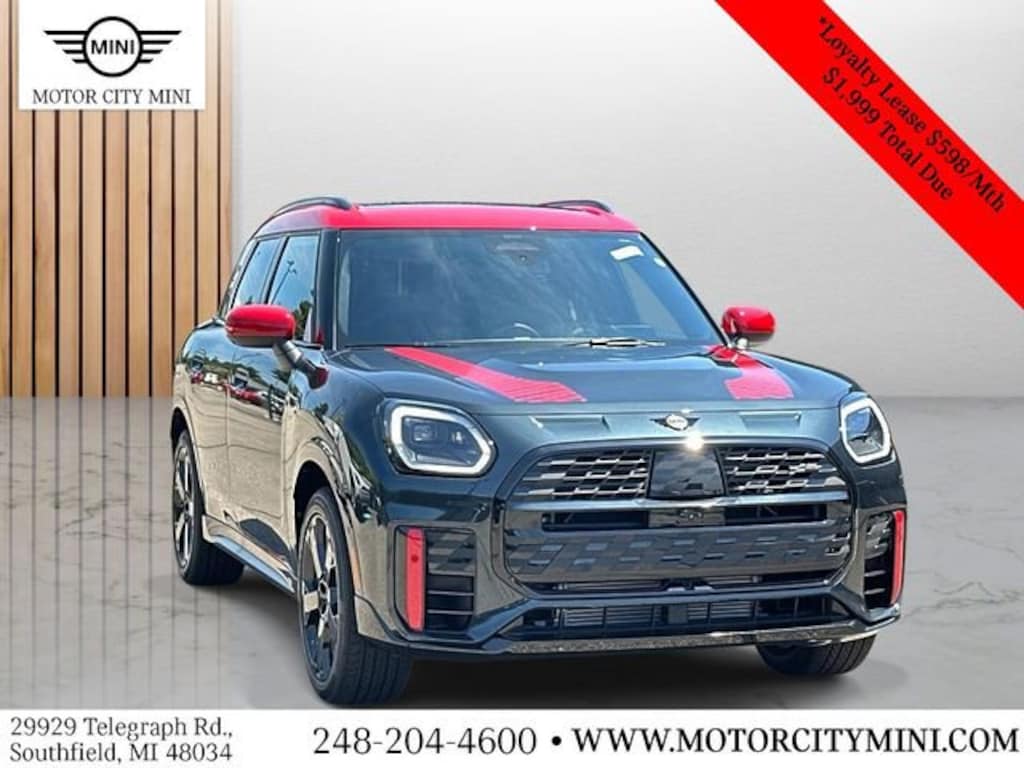 Legend Grey Metallic 2025 MINI John Cooper Works Countryman Iconic 4D Sport Utility AWD 7-Speed Automatic 2.0L 4-Cylinder 16V ABS brakes, Alloy wheels, Chili Red Roof and Mirror Caps, Electronic Stability Control, Front dual zone A/C, Heated Front Seats, Heated front seats, Illuminated entry, Low tire pressure warning, Power Liftgate, Power moonroof, Remote keyless entry, Traction control. 23/30 City/Highway MPG